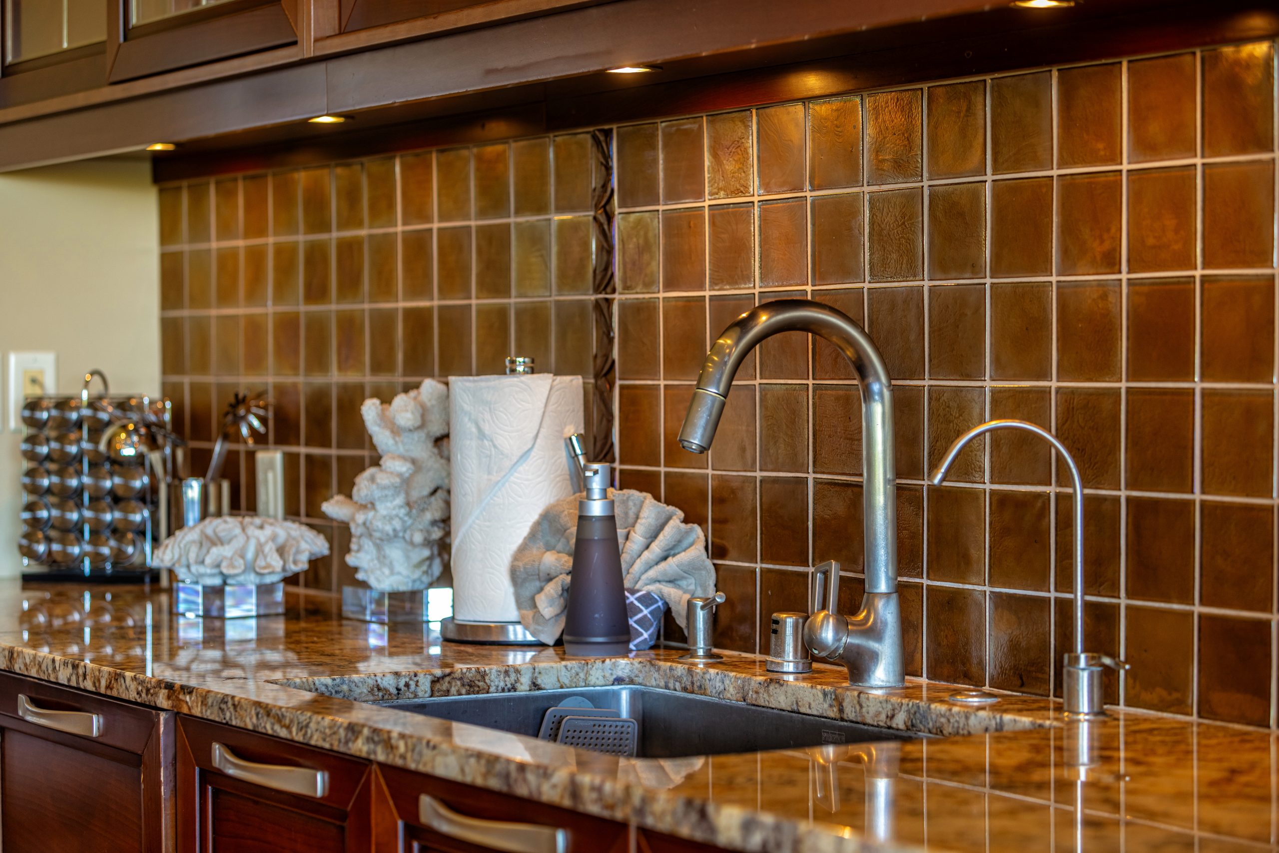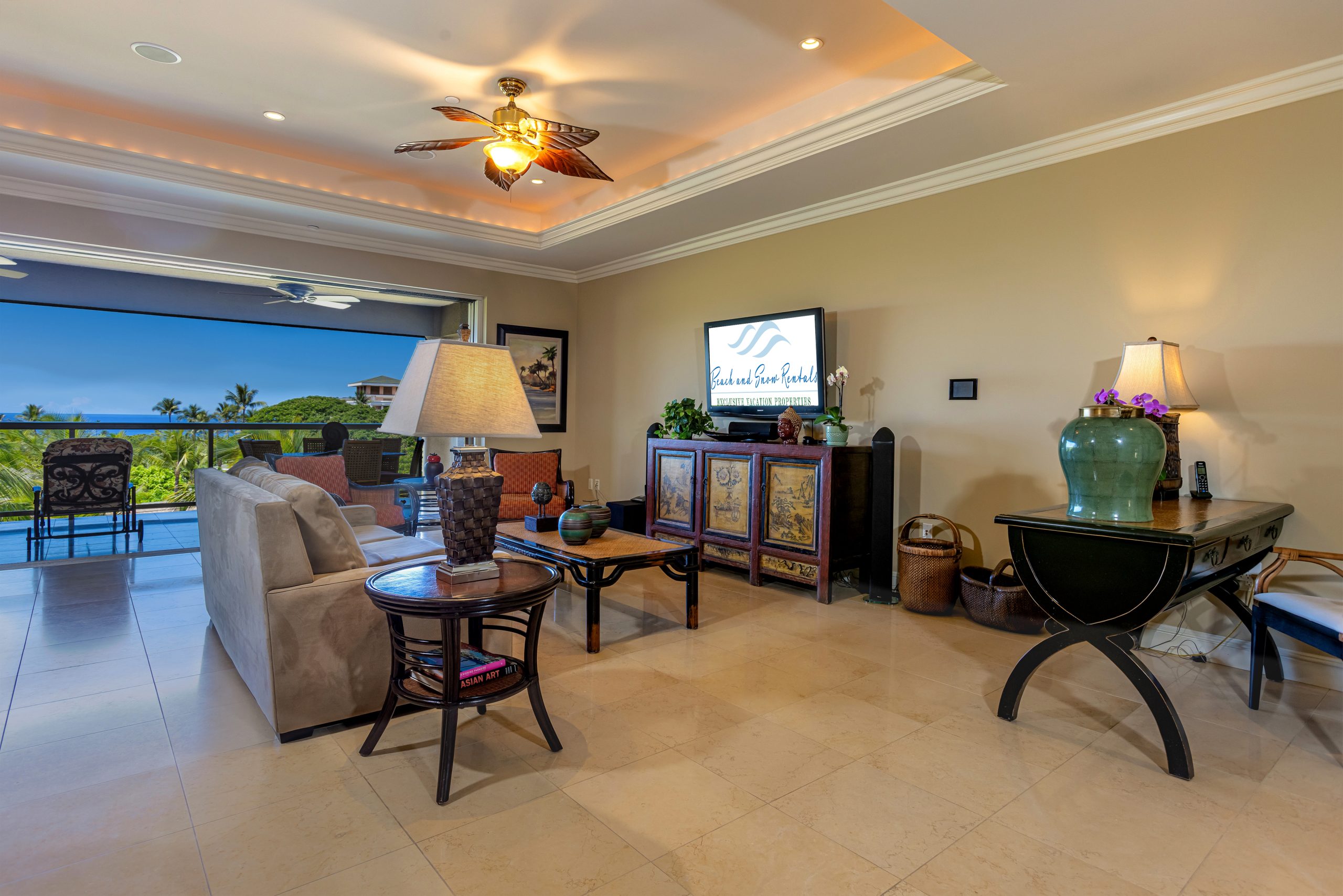 Ho’olei Wailea Beach Villa boasts a state of the art entertainment system which includes a 52′ Sharp Aquos Flat Panel High Definition TV with 7.1 Dolby Digial Surround Sound, DVD player with internet access and bluetooth music streaming capabilities. Additional 42′ Flat Screen TV’s, DVD players, and iPod docks are located in each of the bedrooms. The whole house music system at Hoolei Wailea Beach allows guests to listen to the same music throughout the home, or different music in each of the rooms.