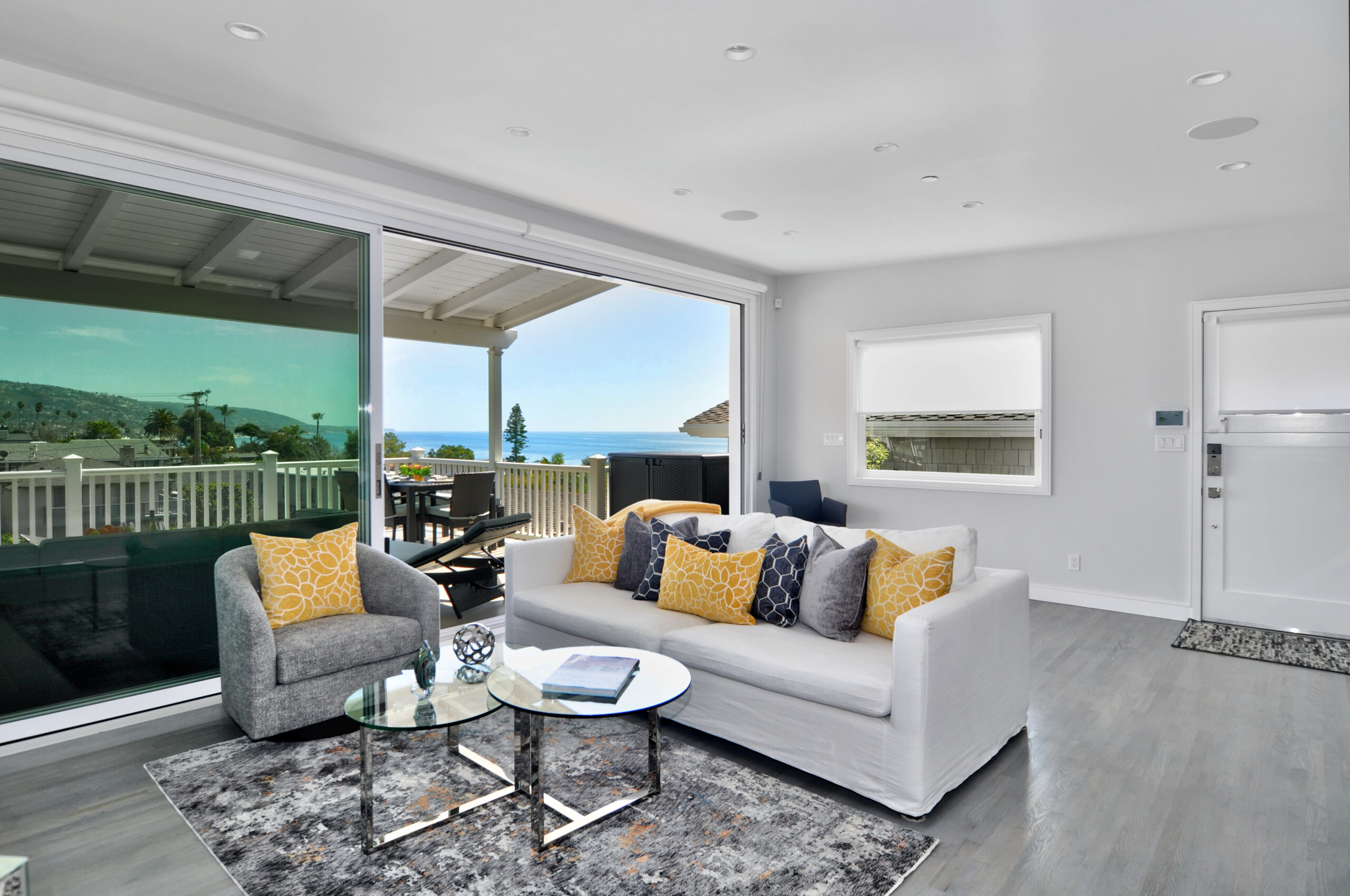 Three Bedrooms and Three Full Baths. The Laguna Beach House is located on the main level of our ocean view luxury duplex. The casual atmosphere of this beach property makes it the perfect place to call home. Imagine drinking your morning coffee while you watch the ocean shimmering just outside your door. This property affords ocean views from the deck, the living room and the kitchen. Beautiful La Cantina Sliding doors allow you blend the indoor and outdoor space all year long. Inside this spacious home the living room features a gas fireplace and wine bar along with Smart TV, Sonos Music System and a comfortable space to work complete with commercial grade wifi and a printer/scanner. The gourmet chef’s kitchen is outfitted with KitchenAid Professional Grade appliances, an extensive array of cookware, dinnerware and glassware. The property contains 3 bedrooms and 3 full baths. The master bedroom features a king size bed, ensuite bath with dual shower heads, and a private garden.